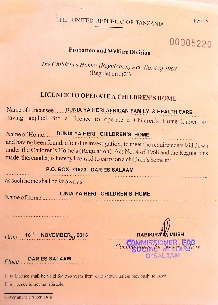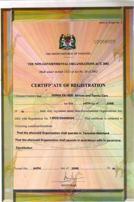 Número de registro da ONG na Tanzânia: I-NGO/00008009