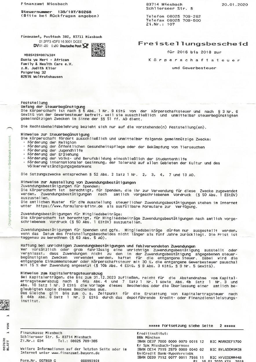 Todo o conteúdo do nosso site (imagens, textos, design do site, layouts, etc.) é protegido por direitos autorais e pertence a: Dunia ya Heri - African Family & Health Care e. V.