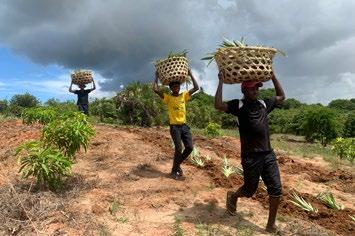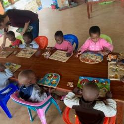 A longo prazo, queremos garantir a autossuficiência do nosso orfanato com produtos próprios. Nossa fazenda de 11 hectares, localizada perto do orfanato, foi cercada nos últimos meses — foram quase dois quilômetros de material de cerca. Agora, um sistema de irrigação autossuficiente baseado em energia solar será instalado para irrigar nossos pomares (principalmente mangas, cocos, bananas, durian, abacaxis e mamões) e hortas durante a longa estação seca. O sistema de irrigação consiste em um poço próprio e um reservatório de água de 50.000 litros com mais de três quilômetros de tubulações de água. As primeiras 4.000 plantas de abacaxi foram plantadas pouco antes da estação chuvosa. Além disso, será construída uma casa com três alojamentos para os funcionários na propriedade da fazenda.