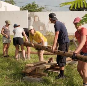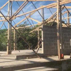 A reconstrução do edifício escolar incendiado está a todo o vapor. No final do ano, os estudantes de arquitetura que construíram o edifício há seis anos vieram para nos ajudar novamente na construção do telhado de estrutura de madeira. A construção exige conhecimentos detalhados que não teríamos tido sem os nossos então estudantes.