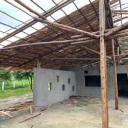 Como já não são estudantes e estão em plena vida profissional, tiveram de tirar dias de férias. Por isso, somos ainda mais agradecidos pelo seu apoio. Desenvolveu-se uma verdadeira amizade. O telhado está agora concluído - desta vez, por segurança, coberto com chapa de aço e não novamente com as facilmente inflamáveis folhas de palmeira. É um pouco mais plano e a aparência é quase a mesma, embora, é verdade, falte o charme do telhado típico de palmeira. Os trabalhos elétricos estão concluídos. Em seguida, o pavimento de cimento precisa de ser renovado, e o acabamento interior e os trabalhos em madeira ainda não estão concluídos. Além disso, precisam de ser feitas instalações sanitárias e trabalhos de azulejos. Estimamos que poderemos colocar o edifício em funcionamento novamente no verão.